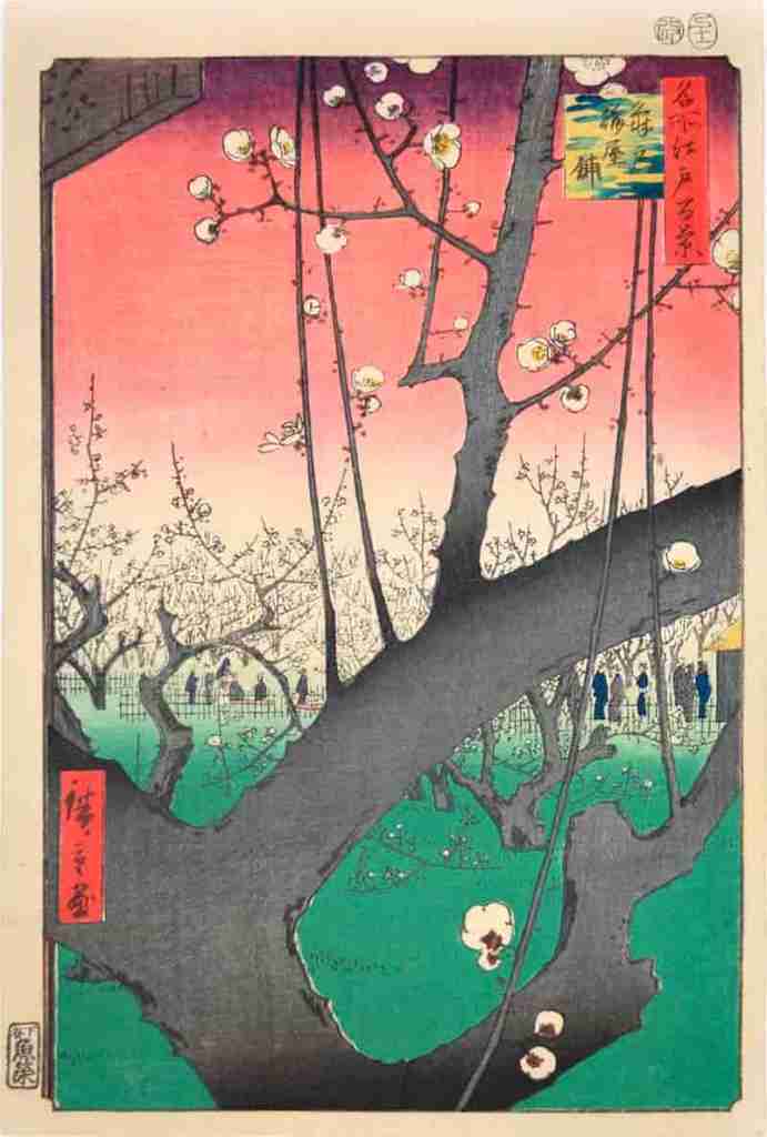 La cortesana de Vincent van GoghVincent-van-Gogh-Almond-Blossom-1890-Jardín de ciruelas en Kameido de Utagawa Hiroshige