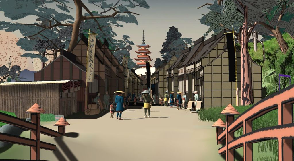 Dicho escenario consiste en una suerte de ruta, de más de 500 kilómetros, que une la ciudad de Edo (actual Tokio), residencia habitual del shogun, o gobernador militar, con Kioto, donde habita normalmente el emperador.