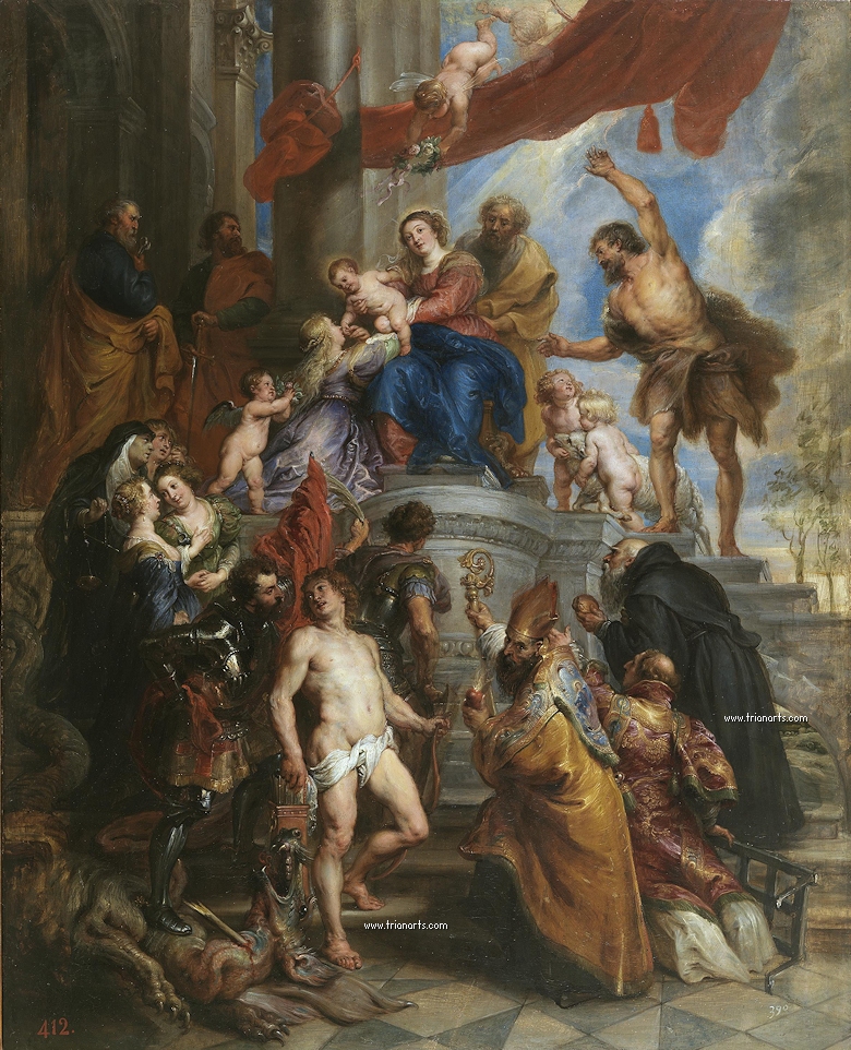 780 Pedro Pablo Rubens – 3 La-Sagrada-Familia-rodeada-de-santos-1630-MPrado-de2t