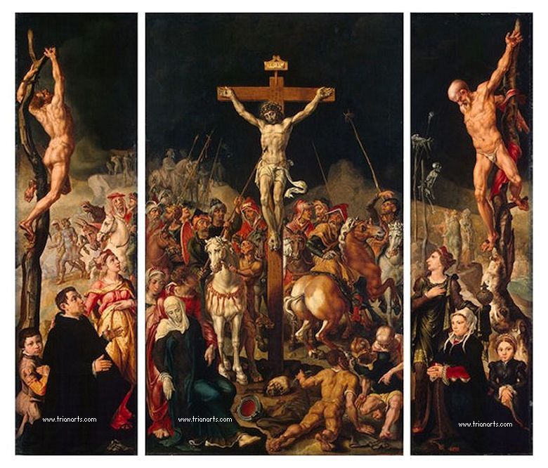 Destacan entre sus piezas una Crucifixión de 1543, en el Museo de Gante; el retablo de la Compañía de las Drapers en Haarlem, de 1546, en la galería de La Haya.