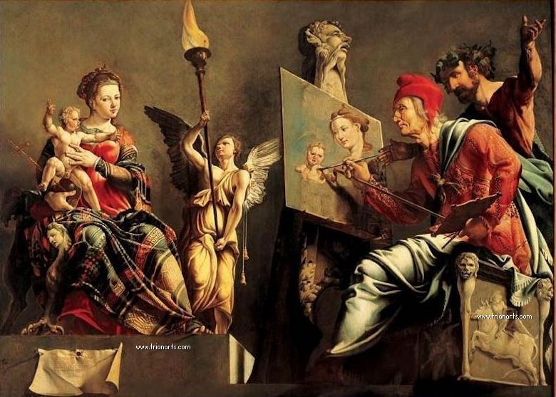 Antes de iniciar el recorrido, hace una escena de San Lucas pintando a la Virgen, para un retablo del altar de San Lucas en el Bavokerk.