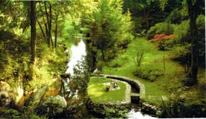 Por un lado, el edificio principal de dos pisos yace plano en medio del parque que lo rodea.