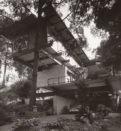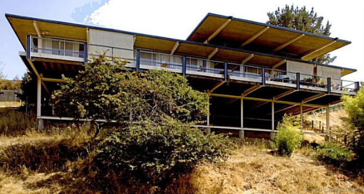 El arquitecto proyectó la casa para Dave Brubeck en Oakland, California (1954), en un inhóspito terreno sobre una pendiente rocosa.