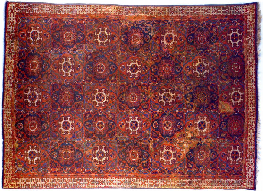 Artists often incorporated skulls as a reminder of mortality. Holbein may have intended the skulls (one as a gray slash and the other as a medallion on Jean de Dinteville’s hat) and the crucifix in the upper left corner to encourage contemplation of one’s impending death and the resurrection.