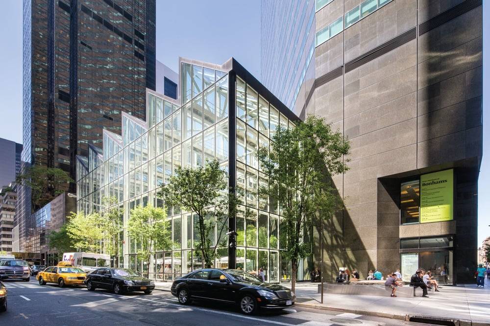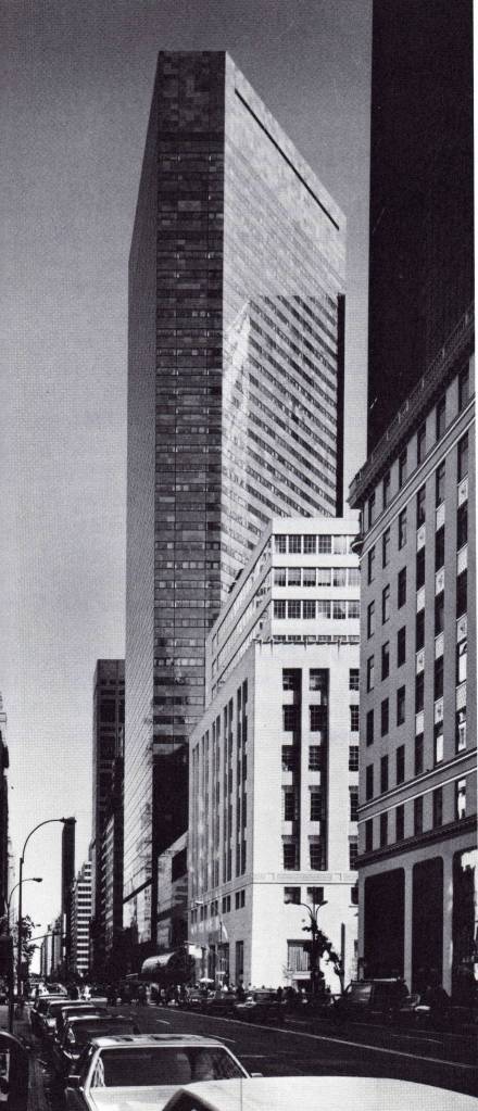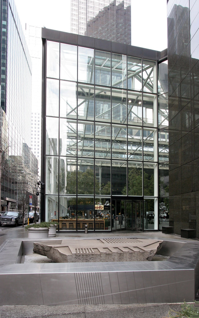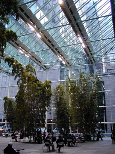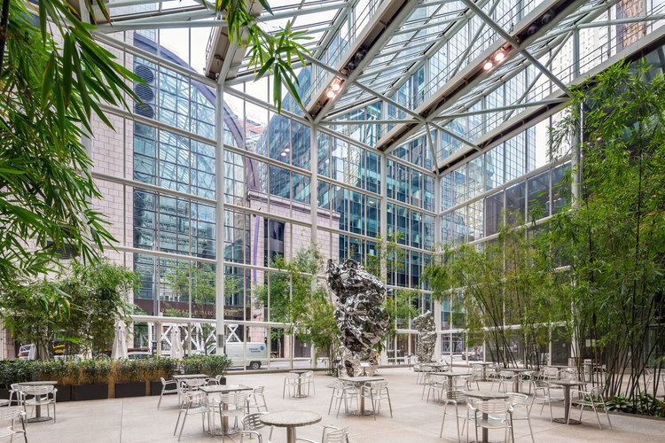 El rascacielos de IBM en Nueva York (1982-1984), de 43 plantas y con fachada de cristal y granito, se caracteriza sobre todo por su área pública al nivel de la calle, que ocupa el 60 % de solar; en ella se pueden tomar unos refrescos entre gigantescas plantas de bambú bajo una cubierta acristalada.