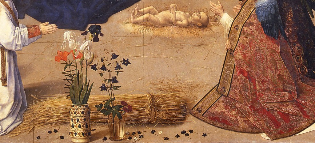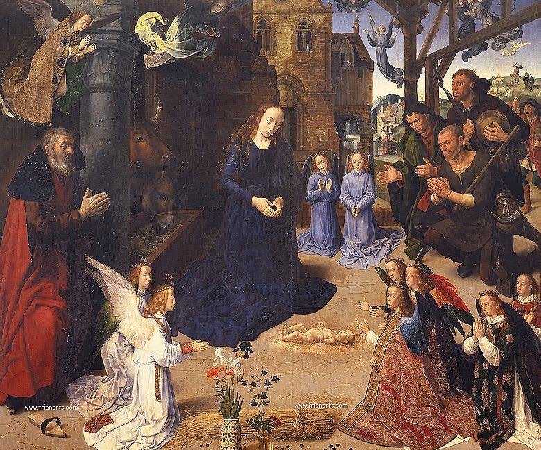 La tabla central del Tríptico se dedica a la Adoración de los pastores.