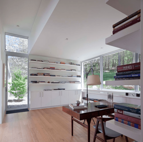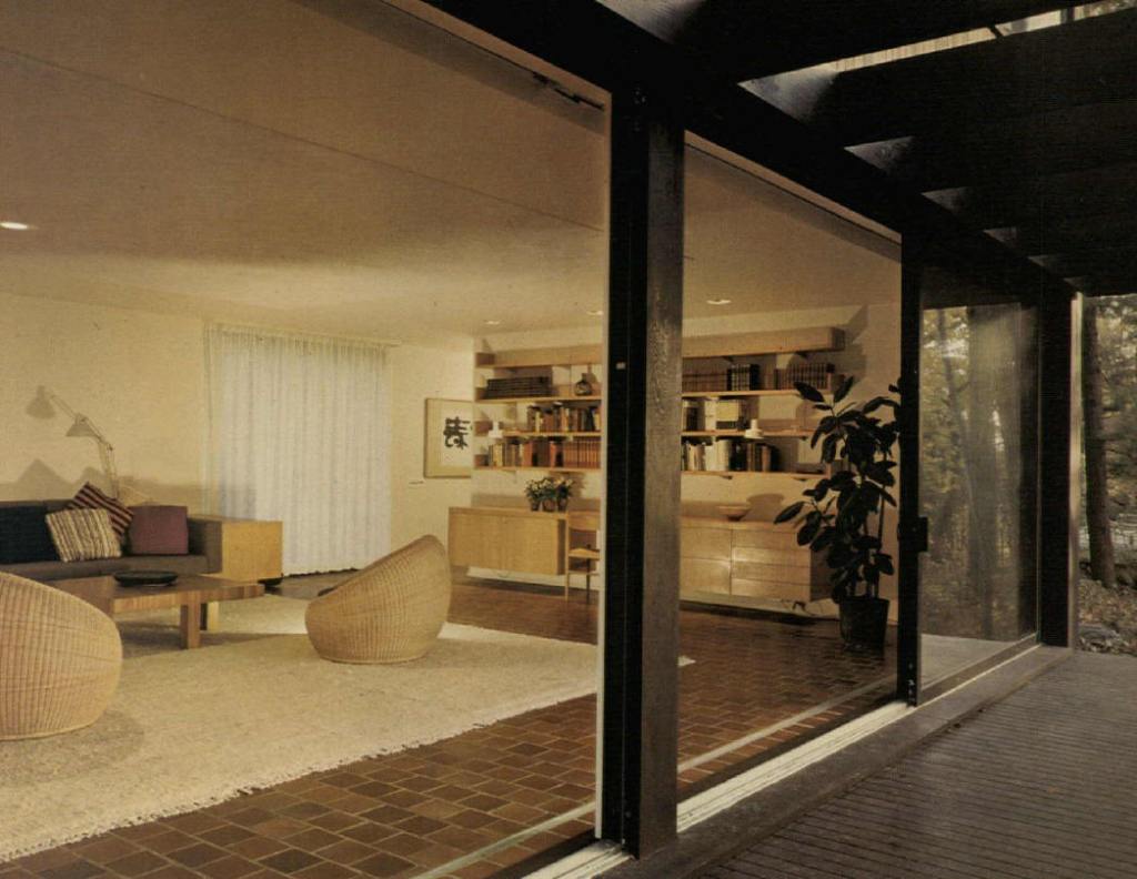 1958 – La casa de Donald Miller, Jr., 301 Roaring Brook Road , Chappaqua NY. Presentado en Architectural Record Houses de 1959 . Ingeniero estructural, William Atlas; HVAC, Benjamin Spivak; construido por O’Brien y Kinkle; diseño de paisaje, Bye y Herrmann; interiores, Mary Barnes y Emily Malino. Vendido en1977 a los Rosenfelds. Fotos de Ben Schnall.