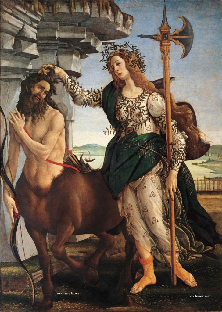 1482 regresa a Florencia y retoma su relación con los Medicis y para los que pinta algunas de sus obras maestras, como Alegoría de la Primavera, Nacimiento de Venus y Palas y el Centauro, actualmente en los Uffizzi.