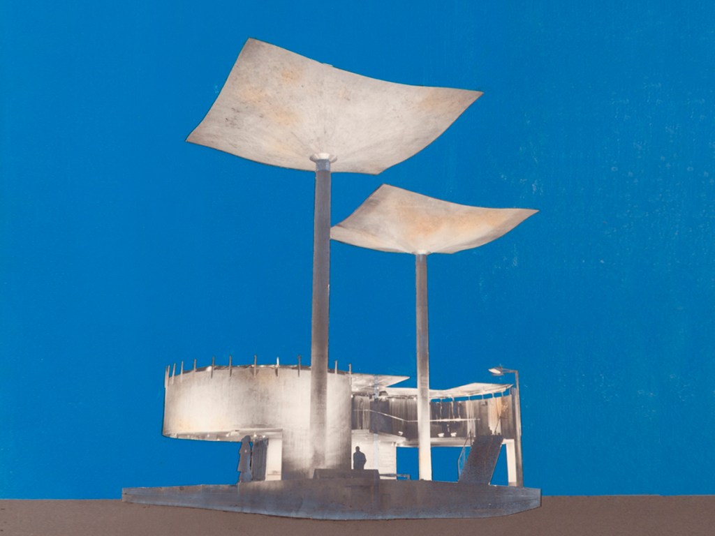 El recurso del tejado que se apoya sobre un pilar y parece oscilar se muestra en el pabellón de exposición de la empresa Bunge y Born, que Williams construye para la Exposición Nacional de 1966 en Buenos Aires.