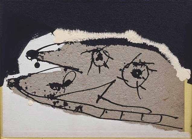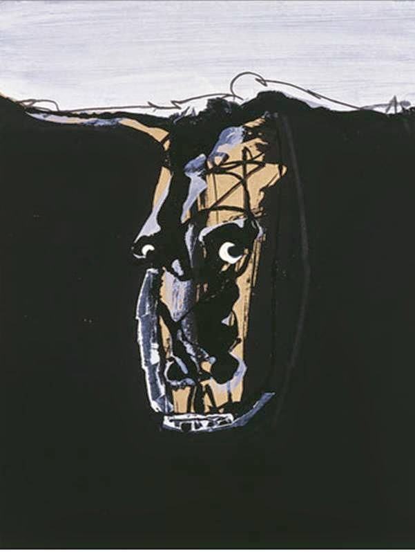 Aunque Saura cuenta que desde niño se fascina por el perro de Goya, los primeros ensayos a partir de esta imagen, pertenecen a las Pinturas negras que datan de finales de los 50.