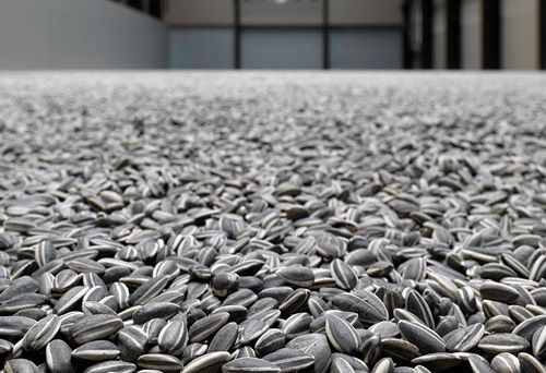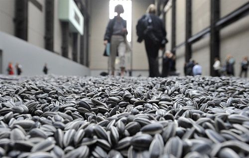 2010 hace una exposición memorable, con el trabajo de 1600 artesanos de la ciudad de Jingdezhen, una disciplina y paciencia sólo propia del mundo oriental, llena la sala de turbinas del museo Tate Modern de Londres con cien millones de pequeñas pipas de porcelana hechas y decoradas a mano.