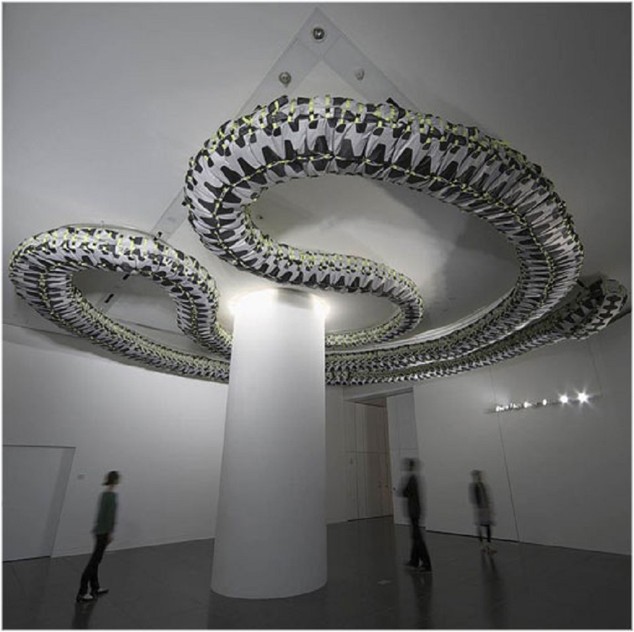 . Instaló 29 esculturas realizadas durante los últimos veinte años, incluidas 5 nuevas obras encargadas especialmente por la Organización NEON, tanto en la periferia como integradas entre el sitio arqueológico y el museo de Delos animando las características geológicas y arqueológicas de la isla.