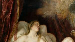 Con este patrón Tiziano se desmarca de la Venus dormida, pues su Dánae esta despierta y atenta al prodigio.