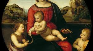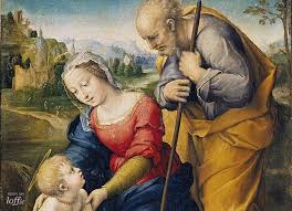Hijo del pintor Giovanni Santi, comienza su forma artística con Perugino, cuya influencia se nota en su primera obra.