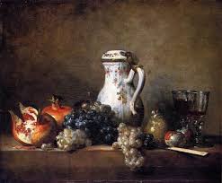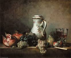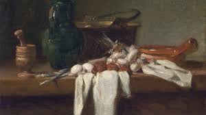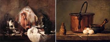 Chardin tiene menos ambición que el anterior, solo pretende hacer bodegones a la manera holandesa.