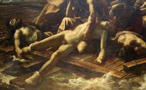 Posa como naufrago para La Balsa de la medusa.