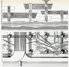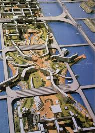 El manifiesto mas radical de una ciudad nueva cuya estructura no se desarrolla a partir de los edificios sino de la infraestructura es el plan de Tokio que Kenzo Tange proyecta en 1959.