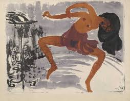 Masson genera un grafismo violento y dinámico y lleno de sacrificios rituales, orgias y luchas.