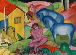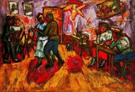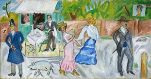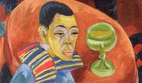 Derain en La danza de 1906 (que no es tan famoso como el de Matisse), combina todos los elementos primitivos, no solo por el tema una danza ancestral, con figuras que se retuercen de manera salvaje y entre cuyas piernas se enreda una serpiente, además de los violentos contrastes de color, sus tintas puras y planas y sus afilados contornos de las siluetas, con la visión de estar todo en movimiento por un ritmo feroz.