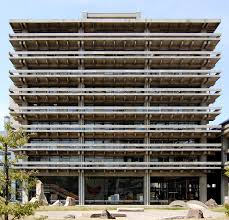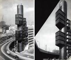 Uno de los proyectos fundamentales de Kenzo Tage es una torre de 12 plantas de prefabricado de hormigón armado, un centro administrativo construido en 1967 de la Sociedad de prensa y radio Shizuoka.