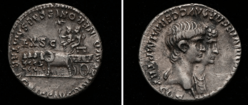 Reverso y anverso de uno de los denarios de plata con la efigie de Nerón. Worcestershire Museums