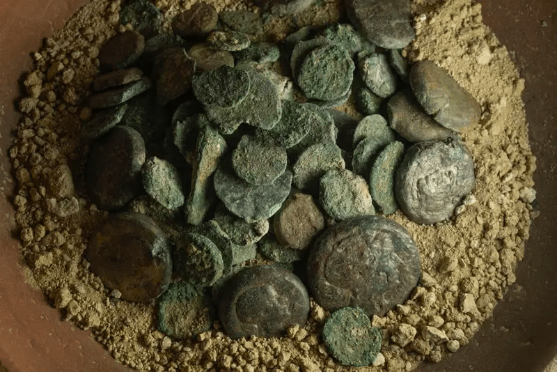 Entre los objetos encontrados recientemente también hay monedas de los emperadores Maximiano y Adriano, piezas que abarcan un amplio rango cronológico y reflejan un período de ocupación extenso, que podría haber sido intermitente. Además, un accesorio de silla de montar de bronce y otros fragmentos de cerámica ofrecen perspectivas para nuevos estudios.