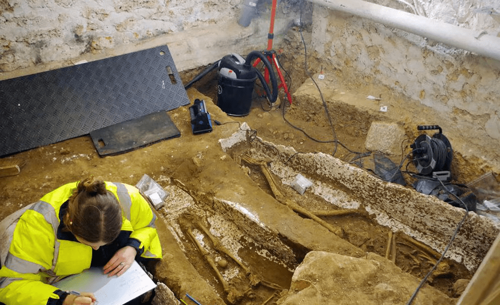 Por ejemplo, los trabajos llevados a cabo en el siglo XIX en la localidad ya sacaron a la luz diversos sarcófagos de yeso típicos del período medieval. En aquel entonces, los investigadores supusieron que los enterramientos estaban asociados a la capilla de Notre-Dame-des-Champs, construida en el siglo VII sobre un antiguo templo pagano que honraba a un manantial.