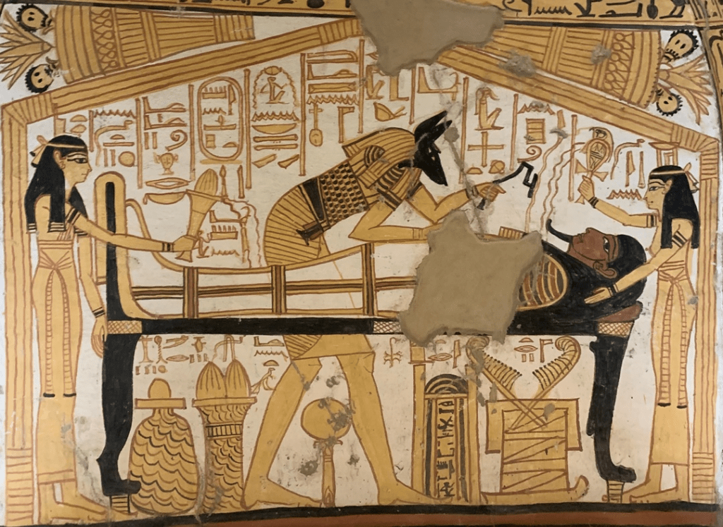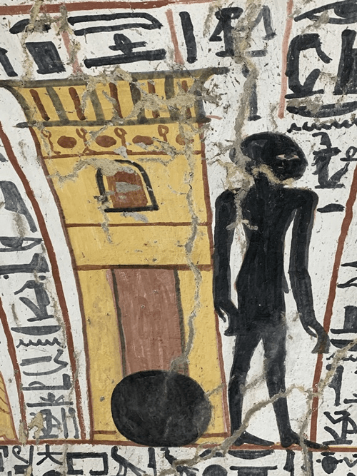 En uno de los bloques de piedra se encontró la representación de una menorá cuya imagen es bastante distinta de la representada en el Arco de Tito: esta tiene una base triangular y brazos de forma poligonal en lugar de semicircular.
